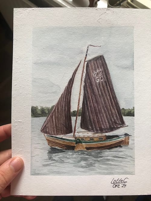 Dit is een aquarel van een platbodem genaamd de Uiterton.