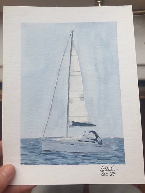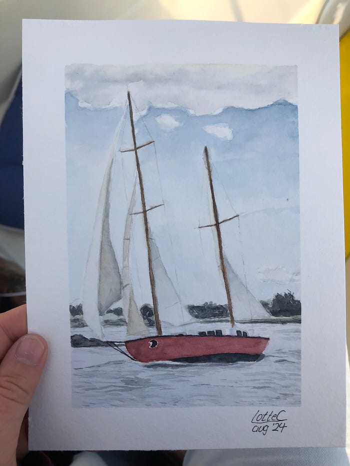 Dit mocht ik schilderen voor Jade, als welkomstcadeau voor haar terugkomst in NL, zij is dit jaar (24-25) meegegaan met School at Sea.