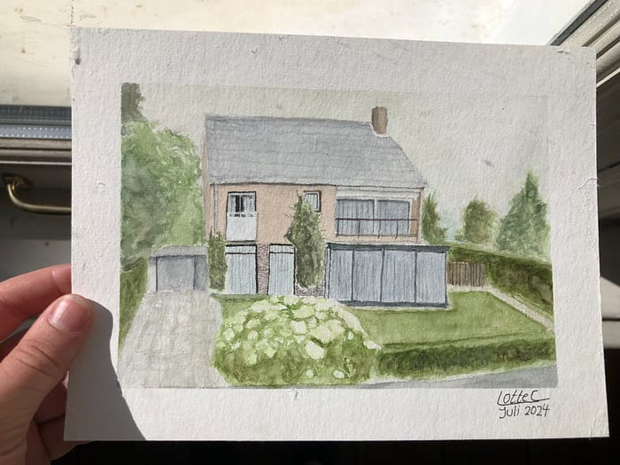 Dit was een cadeau van hem aan z’n ouders. Ze waren heel blij toen ik de aquarel kwam langsbrengen.