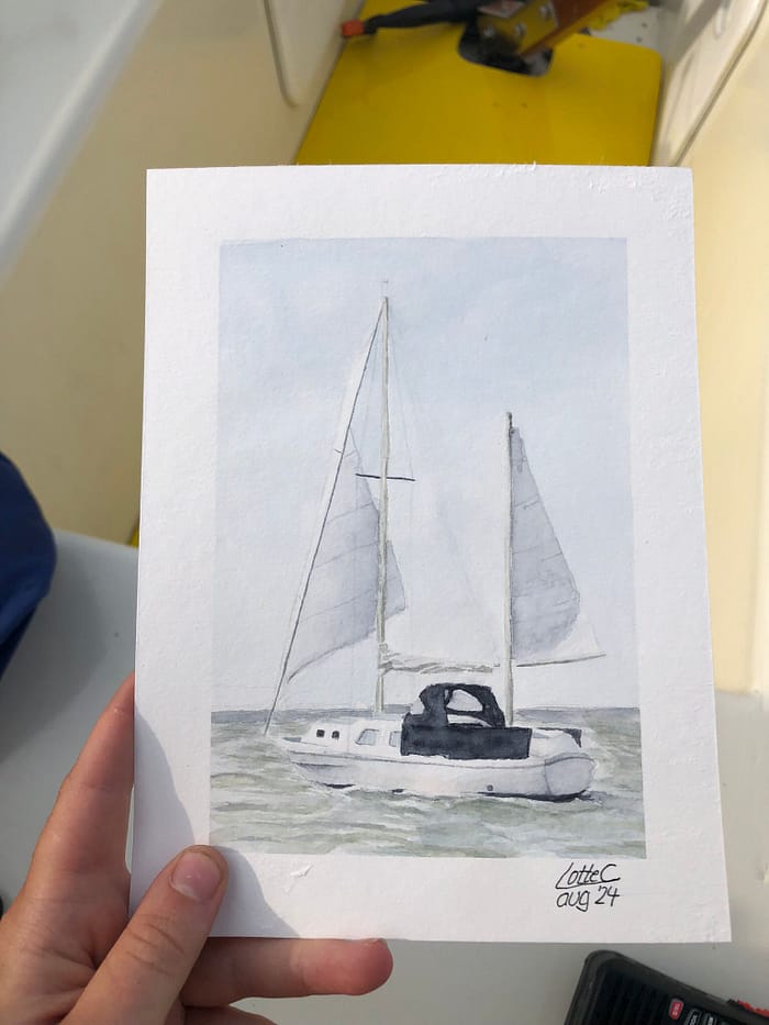 “Een formidabele aquarel van onze Westerly Konsort!”